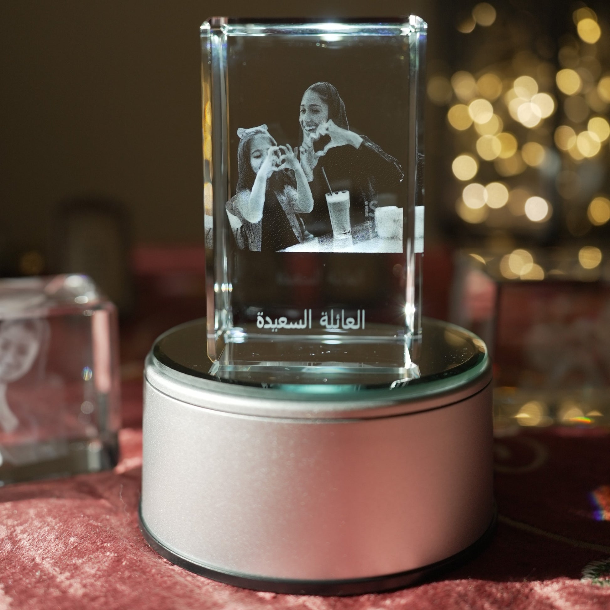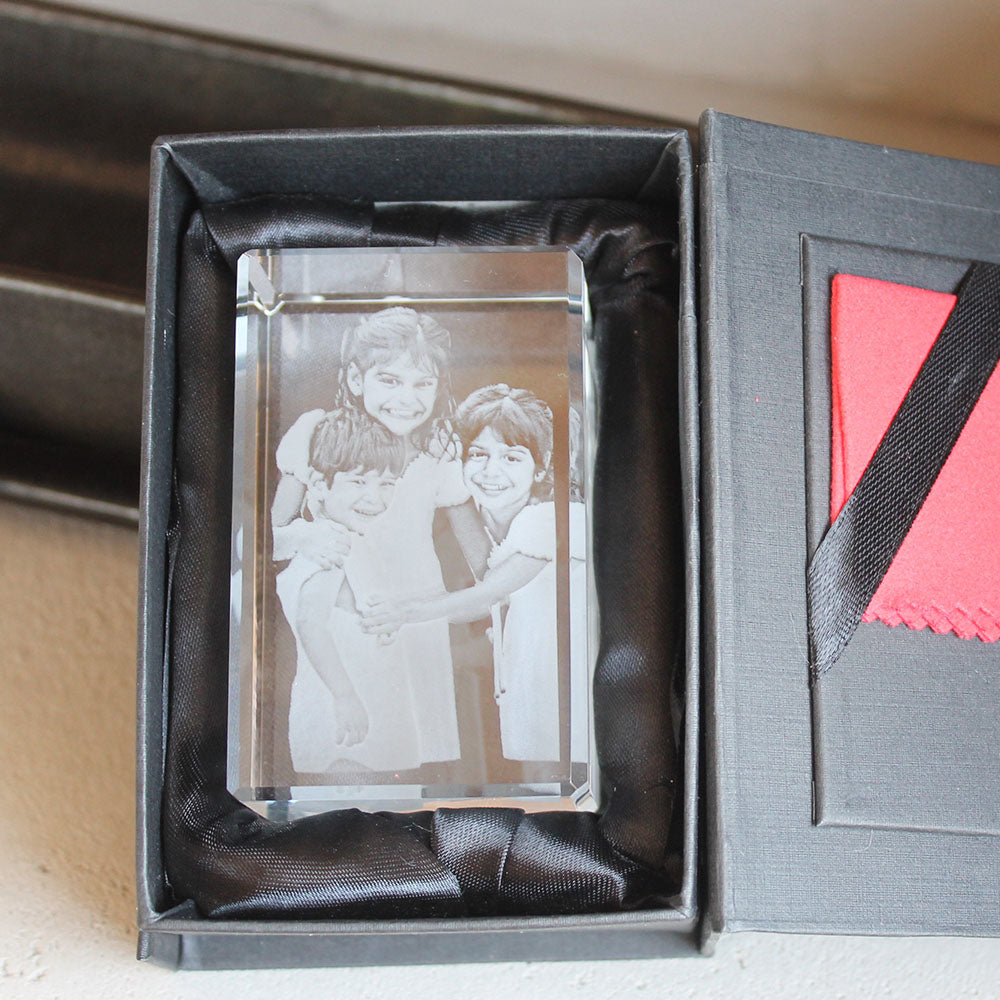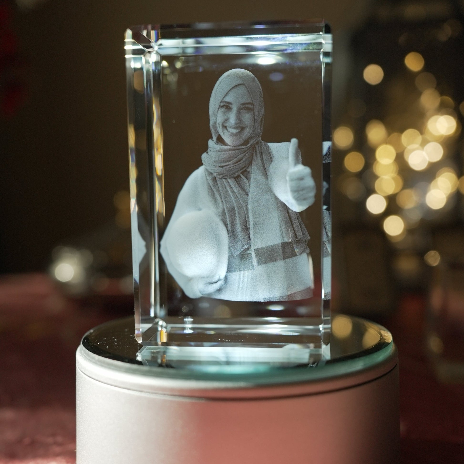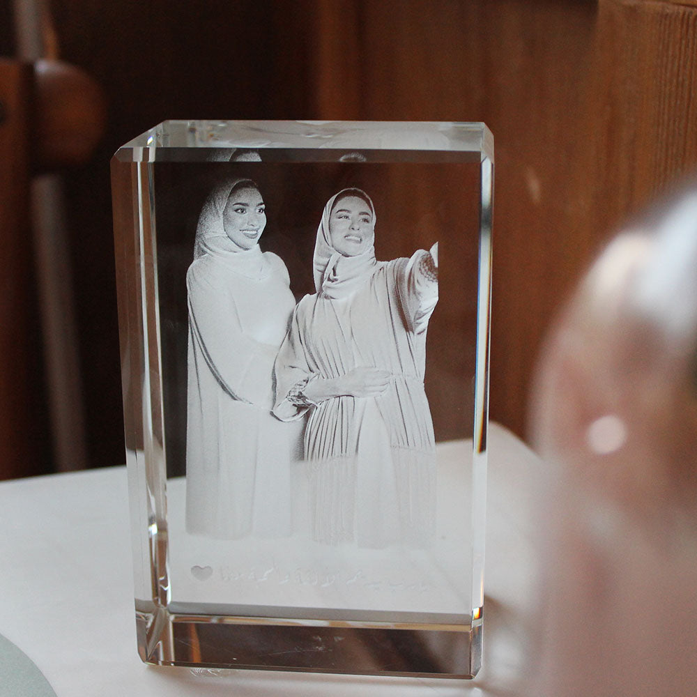 Introducing Almasa 3D Crystal Rectangular Cube, featuring 3D laser engraving technology - the perfect way to transform selfies and group photos into stunning 3D images. Its innovative design creates a mesmerizing visual experience that brings your favorite memories to life. This rectangular crystal is a wonderful addition to your collection of cherished souvenirs, and makes for an unforgettable gift for your loved ones to treasure forever. Available in four sizes - small, medium, large and X large - providing you with the option to choose the perfect size to suit your needs.