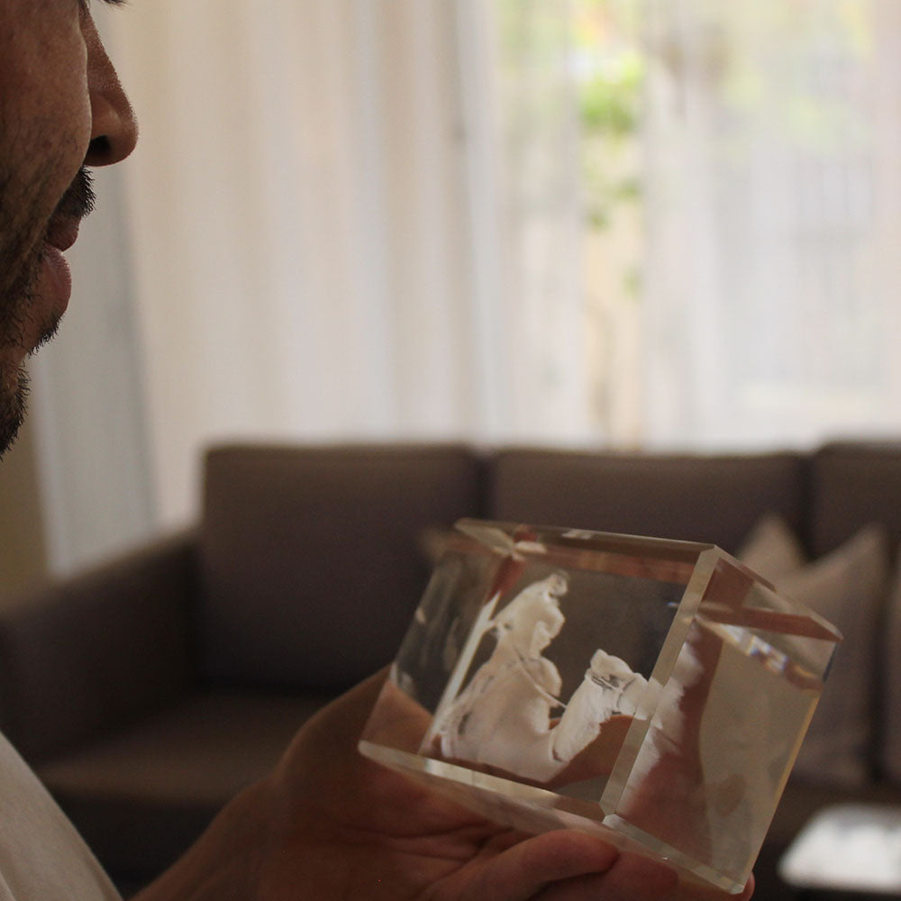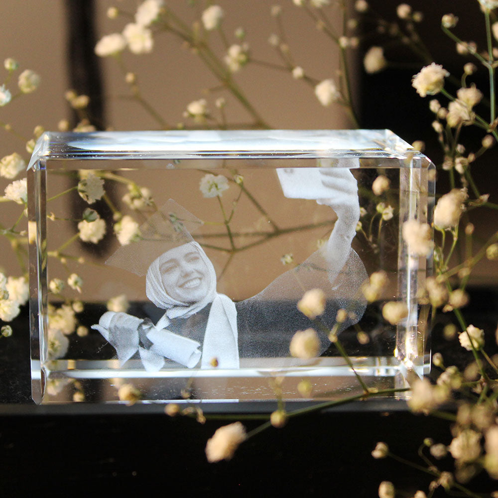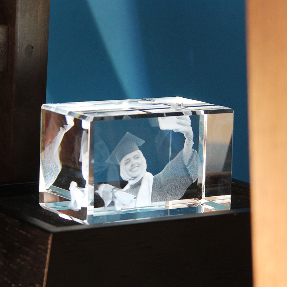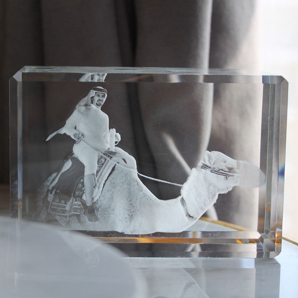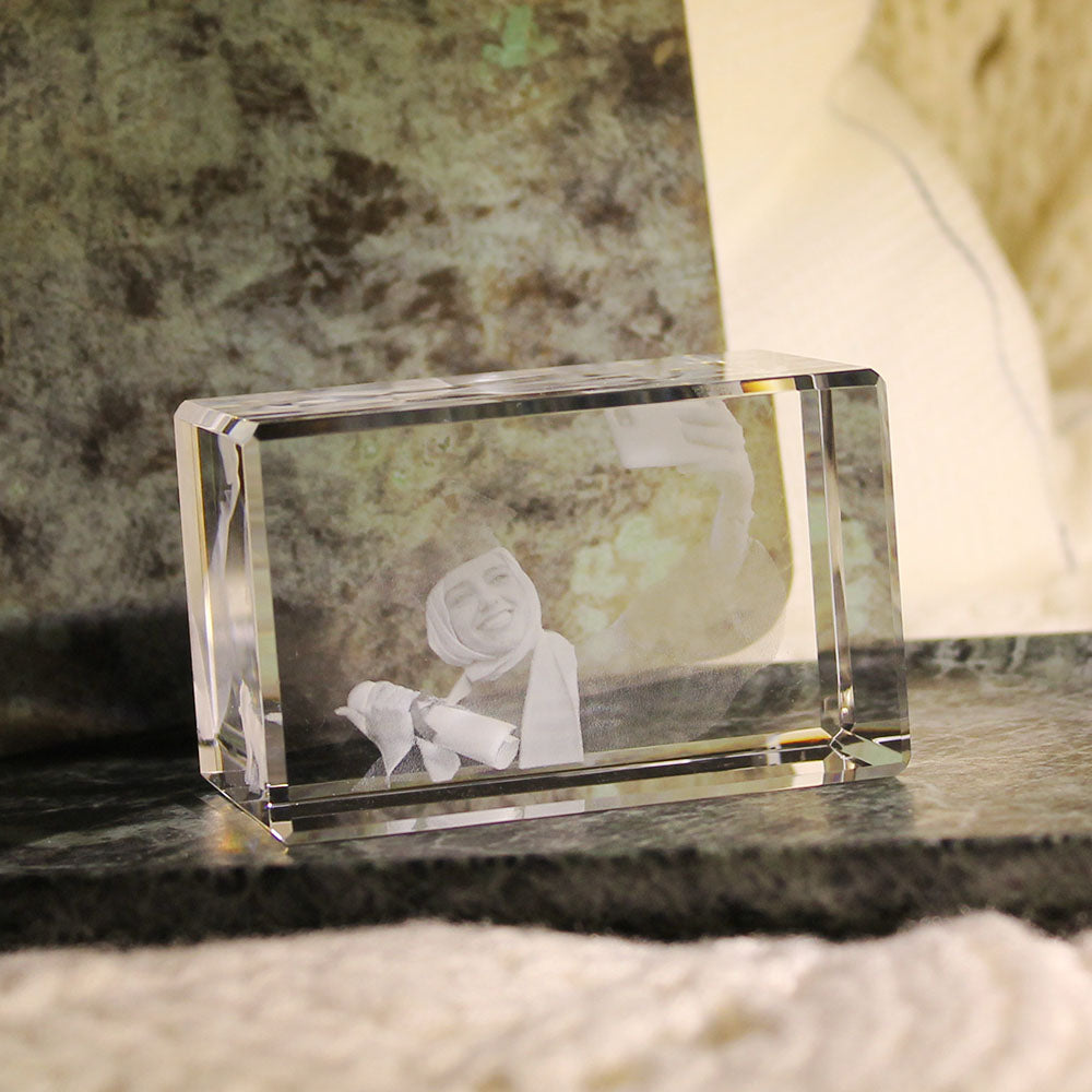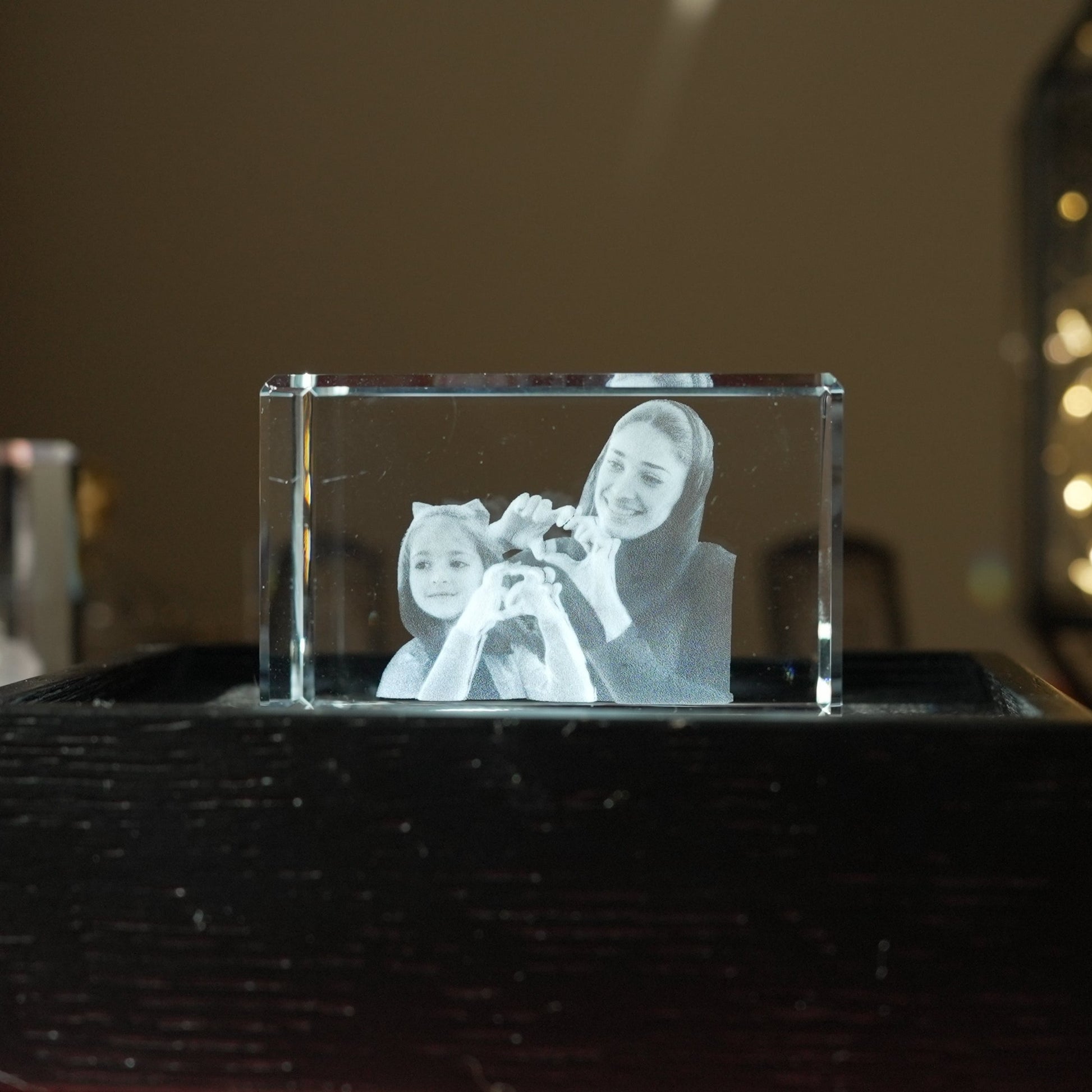 Introducing Almasa 3D Crystal Rectangular Cube, featuring 3D laser engraving technology - the perfect way to transform selfies and group photos into stunning 3D images. Its innovative design creates a mesmerizing visual experience that brings your favorite memories to life. This rectangular crystal is a wonderful addition to your collection of cherished souvenirs, and makes for an unforgettable gift for your loved ones to treasure forever. Available in four sizes - small, medium, large and X large - providing you with the option to choose the perfect size to suit your needs.