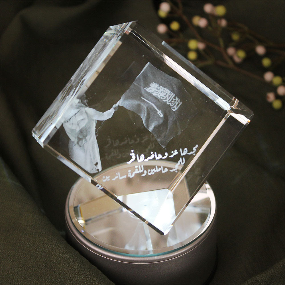 Introducing Almasa 3D Diamond Crystal Cube - a stunning and unique way to showcase your favorite memories! This key showpiece can hold a customer's given photo, which will be laser-engraved inside the crystal to create a stunning and personalized 3D effect, that reflects in LED lights. The product is made of high-quality crystal, that catches the light beautifully, creating a truly dazzling effect. Perfect for any occasion, our diamond crystal makes for a memorable and thoughtful gift that is sure to impress. Display it on your desk, bookshelf, or anywhere you want to add a touch of elegance and style. Don't settle for ordinary picture frames, elevate your memories with our Diamond Crystal Cube.
